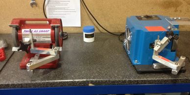 We also have a range of bench mounted and hand held machines which can be used for cleaning and sharpening a vast array of household, gardening and workshop equipment such as screwdrivers, chisels, axes, mower blades, drill bits, etc etc. This equipment allows us to sharpen virtually anything!